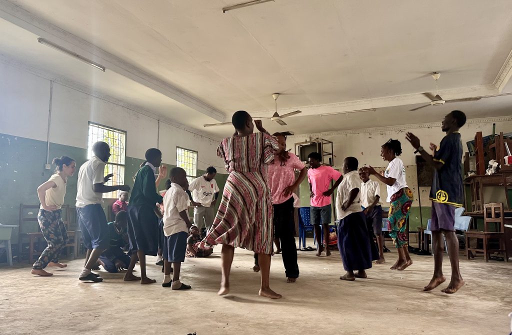 Starting in August 2025, as part of the“Inclusion Lab” project, we have established dance, music, and movement classes at Mwambao special needs class in Bagamoyo. The focus of the classes is on fostering personal development, artistic expression, and technical skills. The technical aspect emphasizes building a detailed body image, cultivating a nuanced perception of one’s own body weight, and exploring the movement potential within available space.